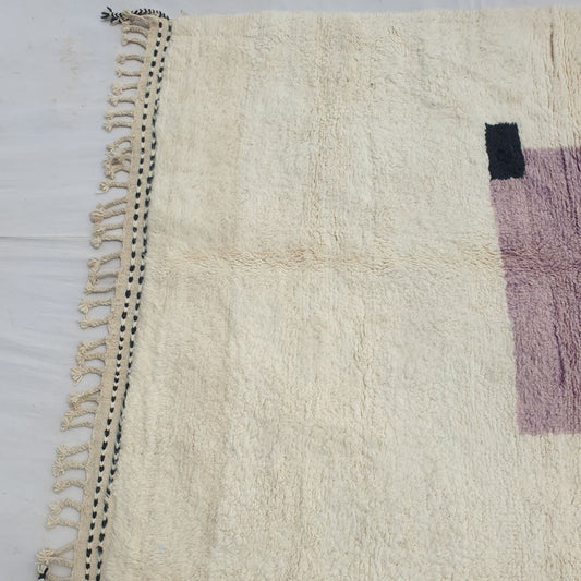 Khzamia | Tapis Beni marocain 6x9 Ultra Doux | Beni Ouarain Blanc & Lavande | 9'51x6'69 Pi | 290x204cm
