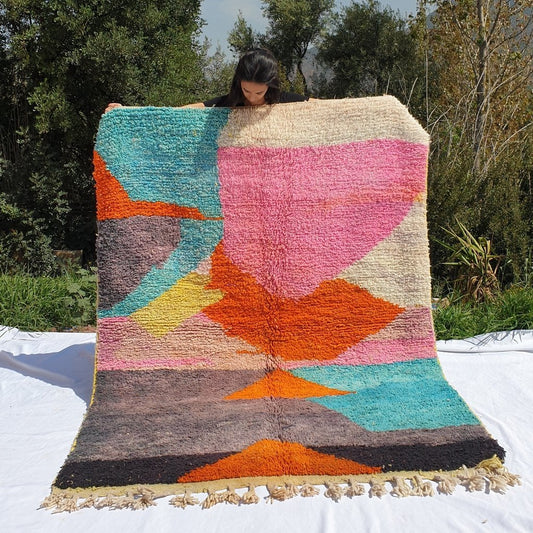 Pirioui - Tapis berbère coloré 5x8 fait main | 8x5 pieds | 2,5x1,5m | 100% laine