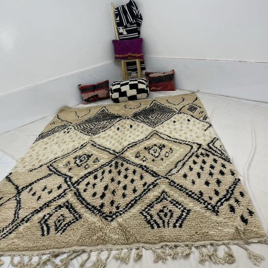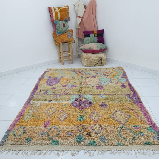Tapis Beni marocain ultra moelleux | 9'4x6'7 pieds | 2,86x2m | BKIRA | Tapis marocain coloré Beni Mrirt | 100% laine fait main