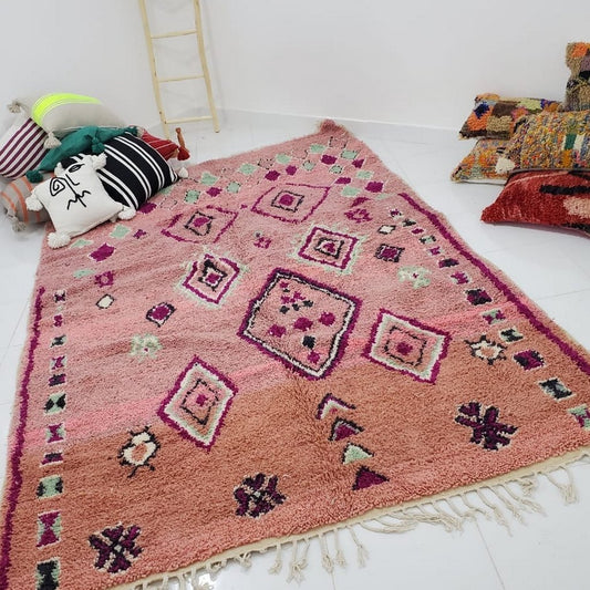 Tapis Marocain Rose Orange Boujaad | 9'5x6'5 pieds | 2,9x2m | BIDOUH | 100% laine fait main