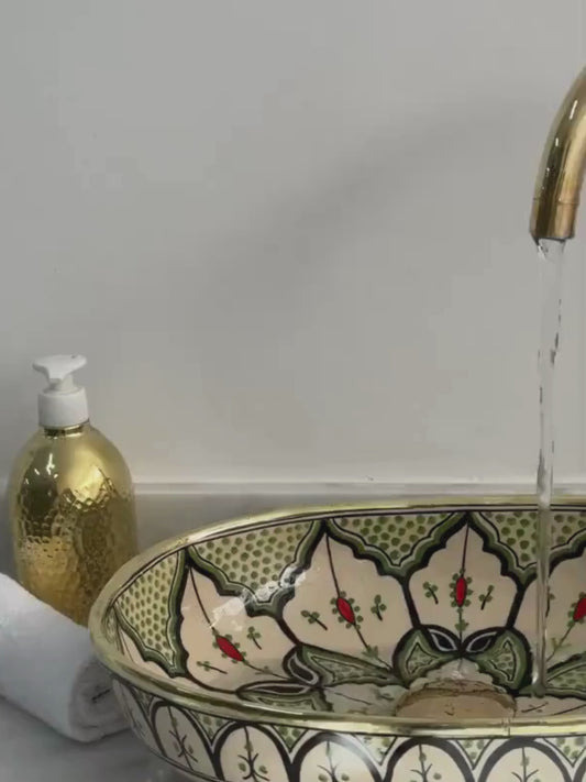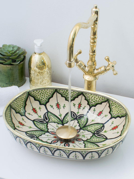 Benimellal - Évier de salle de bain ovale vert fait à la main - élégant, personnalisable et sans plomb - (Etat)