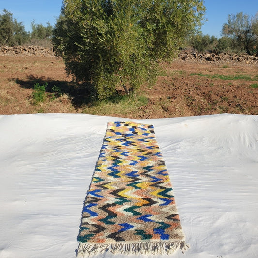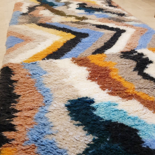 Coureur RYBA | 9'2x2'5 pieds | 2,8x0,77m | Tapis coloré marocain | 100% laine fait main