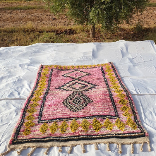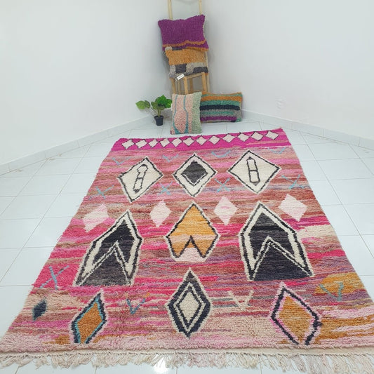 ROWARDA Tapis marocain Boujaad rose | 8x5 pieds | 2,45x1,50m | 100% laine fait main