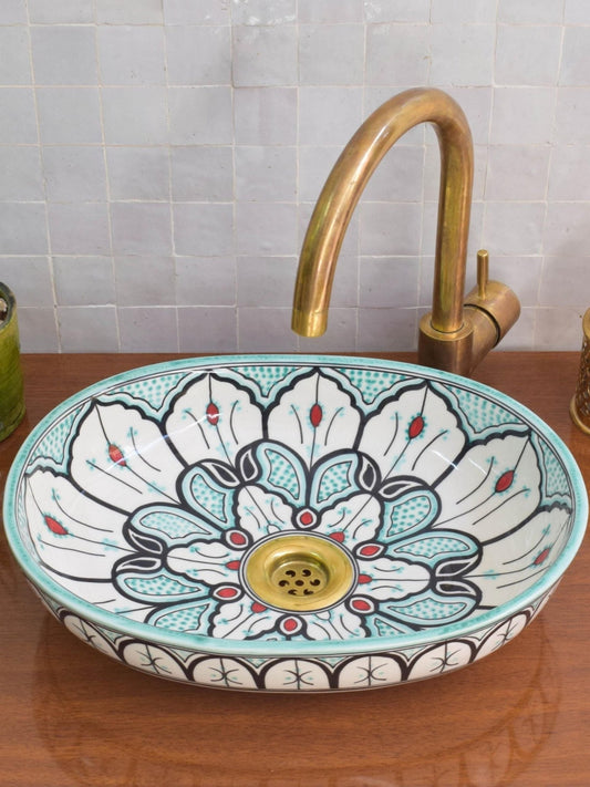 SAFI - Vanité d'évier de salle de bain en céramique peinte à la main - élégante, personnalisable et sans plomb - (ETAFS)