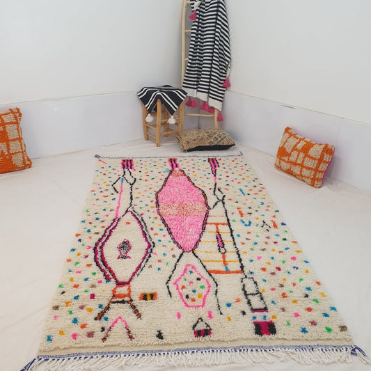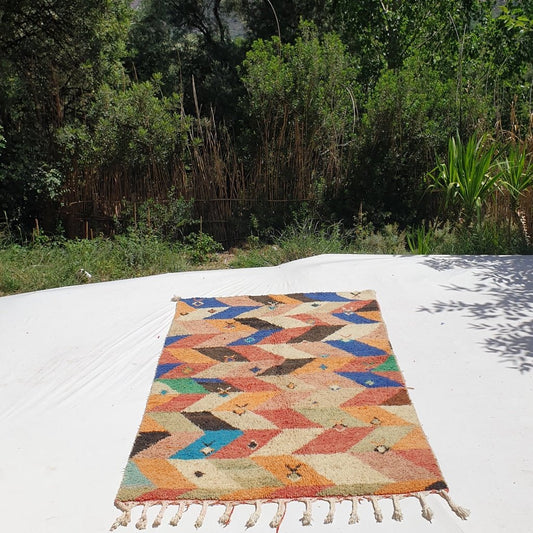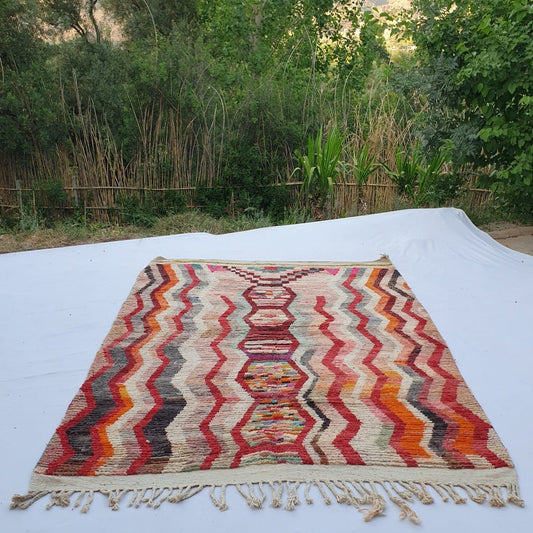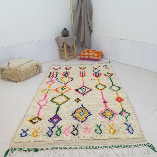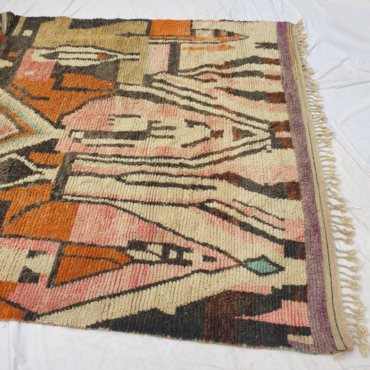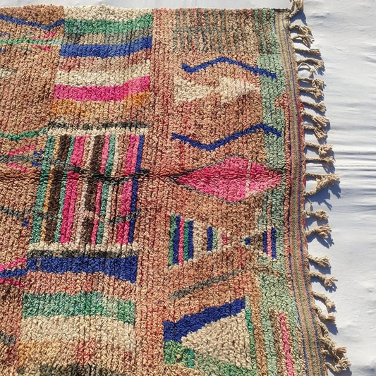 Zadaina - Tapis Marocain Boujad | Tapis de chambre berbère authentique coloré fait à la main | 8x5 pieds | 2,45x1,52m