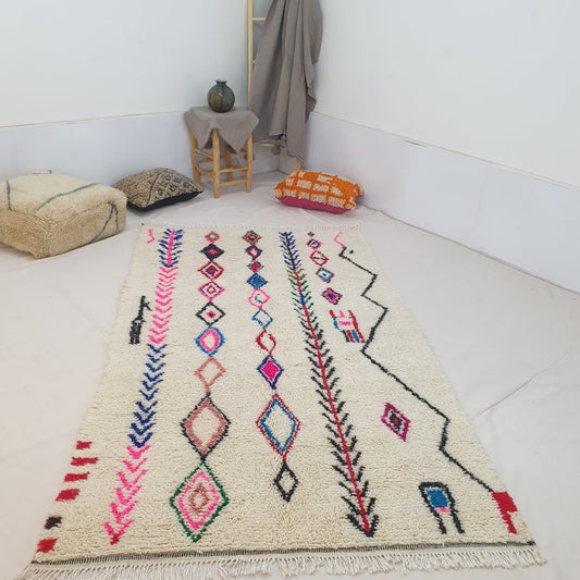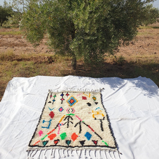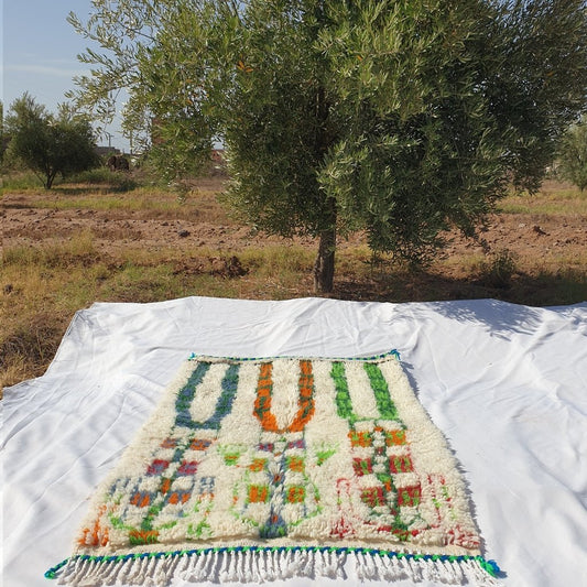 Tapis marocain Azilal blanc | tapis marocain vintage | tapis berbère vintage | Tapis de zone marocaine | Tapis en laine marocain authentique fait à la main | 5'2x3'4 pi