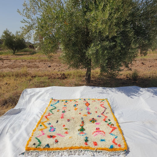 Tapis marocain Azilal blanc | tapis marocain vintage | tapis berbère vintage | Tapis de zone marocaine | Tapis en laine marocain authentique fait à la main | 4'9x3'3 pi