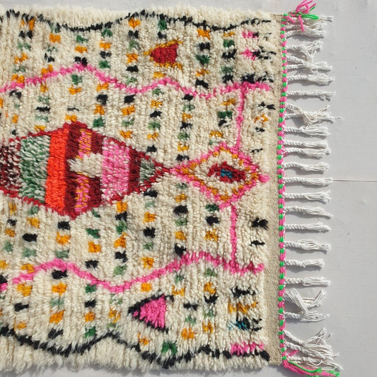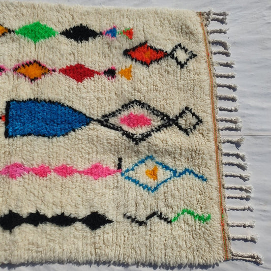 Tapis Marocain Blanc Azilal | Tapis en laine marocain authentique fait à la main | Tapis berbère marocain pour chambre à coucher | 163x90 cm | 5'35x2'95 pi