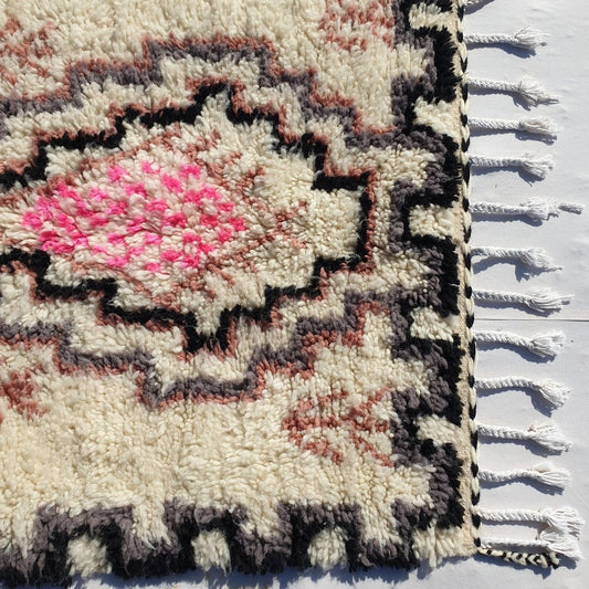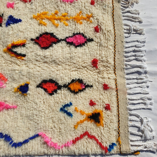 Tapis Marocain Blanc Azilal | Tapis en laine marocain authentique fait à la main | Tapis berbère marocain pour chambre à coucher | 152x102 cm | 5x3'35 pi