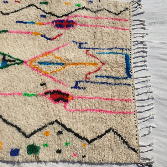 Zellij - Tapis Marocain Beni Ouarain | Tapis de chambre berbère authentique coloré fait à la main | 8'79x4'70 Pi | 2,68x1,43m