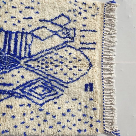 Tapis Marocain Blanc Azilal | Tapis en laine marocain authentique fait à la main | Tapis berbère marocain pour chambre à coucher | 145x99cm | 4'76x3'25 pi