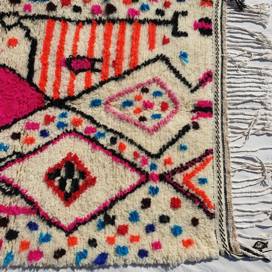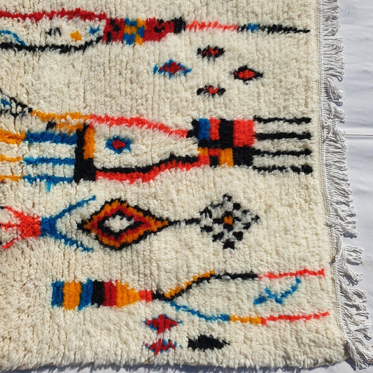 Tapis Marocain Blanc Azilal | Tapis en laine marocain authentique fait à la main | Tapis berbère marocain pour chambre à coucher | 145x98 cm | 4'76x3'22 pi