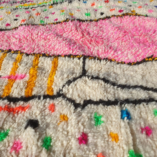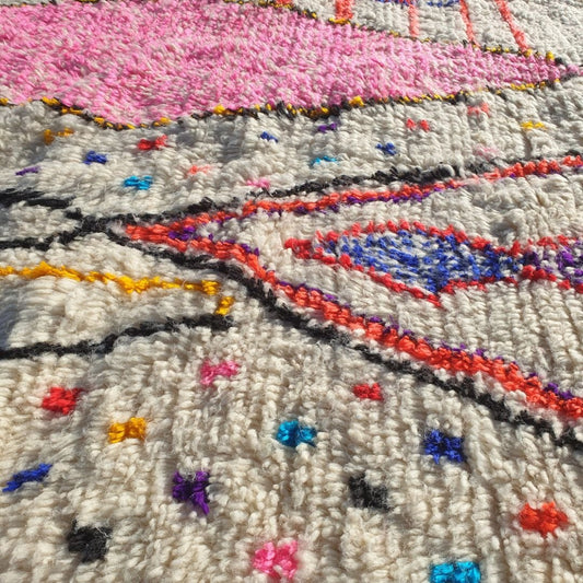 Tapis Azilal blanc marocain | BIDWA | 10x6 pieds | 3x1,82 m |100% laine fait main