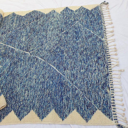 TAPIS BENI OUARAIN Tapis de salon bleu doux et épais | Tapis marocain à poils longs en laine berbère authentique | 9'8x6'6 pieds | 3x2 m | BIHRA