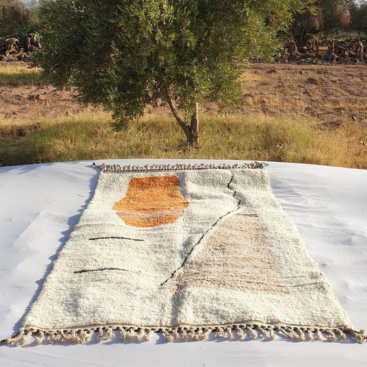 Tapis Marocain Blanc Azilal | Tapis en laine marocain authentique fait à la main | Tapis berbère marocain pour chambre à coucher | 163x107 cm | 5'35x3'51 pi