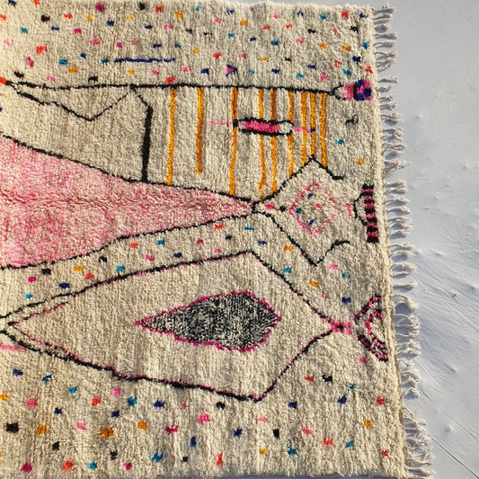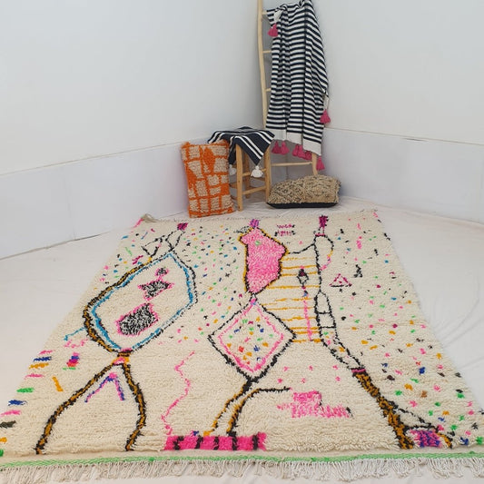 Bhalba - Tapis Marocain Beni Ouarain | Tapis de chambre berbère authentique coloré fait à la main | 8'17x5'35 pieds | 2,49x1,63m
