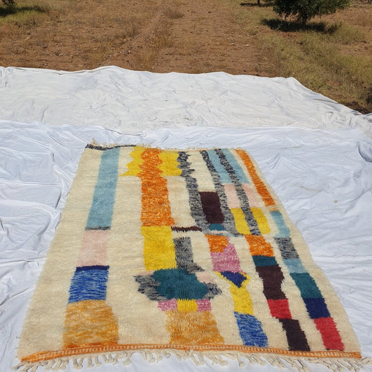 TAPIS BENI OUARAIN Tapis de salon coloré doux et épais | Tapis marocain à poils longs en laine berbère authentique | 9'7x6'6 pieds | 3x2 m | Kanya