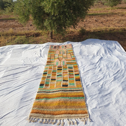 Tapis coureur marocain | Authentique coureur Boujaad | Tapis de laine coloré | Coureur berbère | Coureur de couloir | 6'2 x 2'8 pieds | 188x86cm