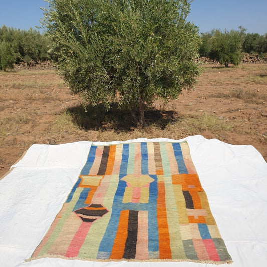 TAPIS MAROCAIN BOUJAAD | Tapis berbère marocain | Tapis coloré Tapis marocain | Tapis de chambre berbère authentiques faits à la main | 8x5 pieds | 2,45x1,52m