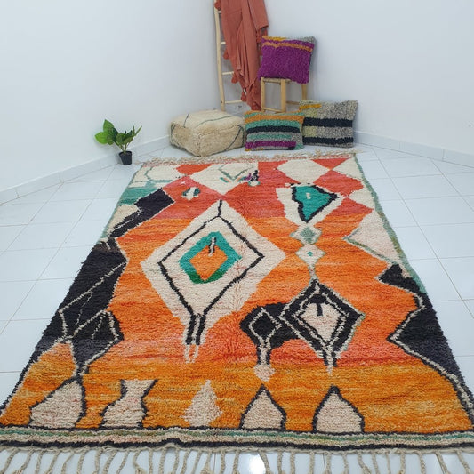 KINA | Tapis Marocain Orange Boujaad | 10'5x6'6 pieds | 3,2x2m | 100% laine fait main