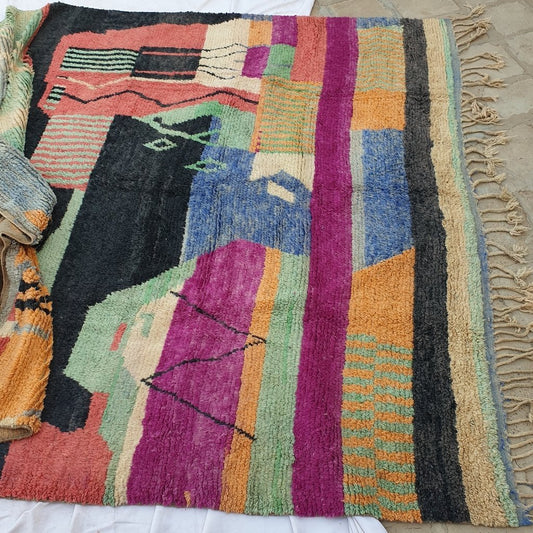 FOSTOK | 10'5x6'4 pieds | 320x195cm | Tapis coloré marocain | 100% laine fait main