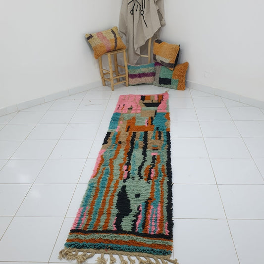 Coureur OUED | 9x2 pieds | 3x0,7m | Tapis coloré marocain | 100% laine fait main