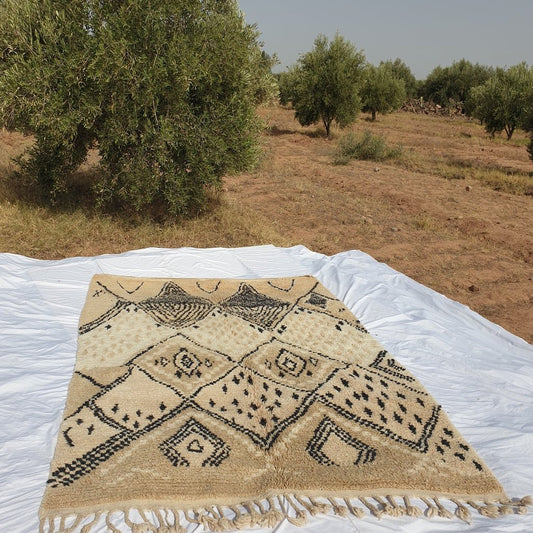 Tapis marocain Beni Ultra doux et épais | 8x5 pieds | 2,43x1,52m | BRIA | Tapis marocain coloré Beni Mrirt | 100% laine fait main