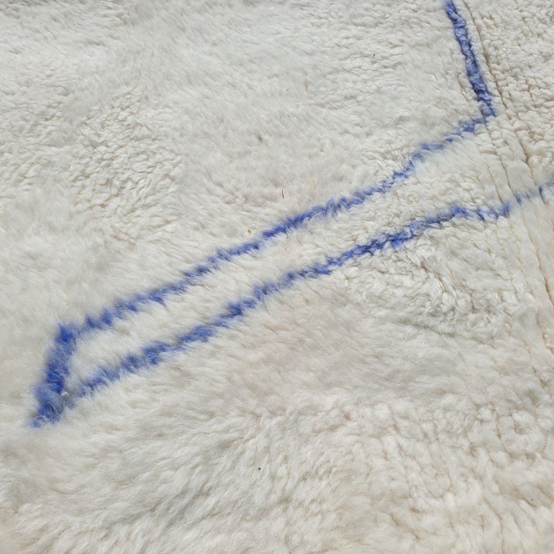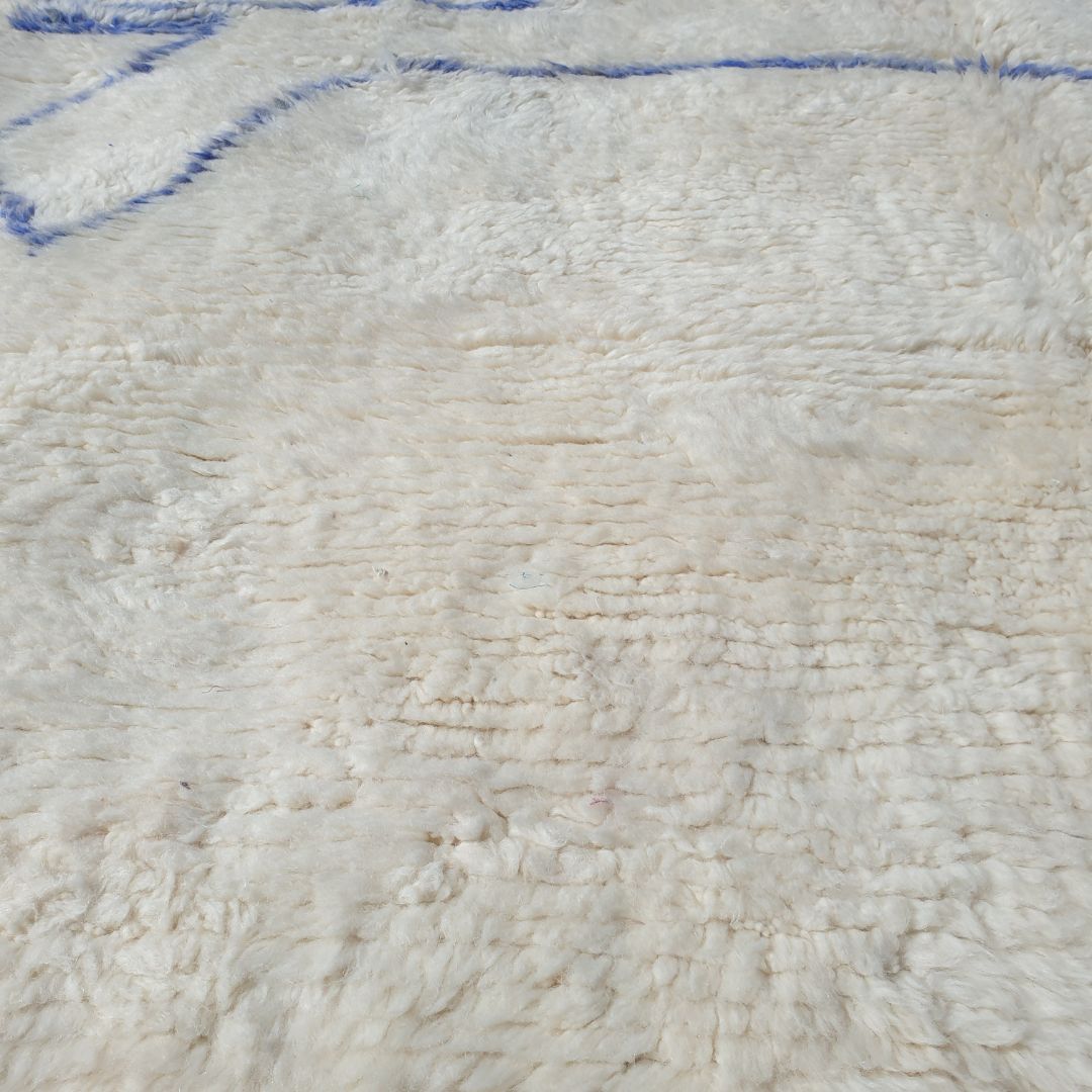 Beni Ourain rugs, like this morocco rug, feature soft, thick wool with abstract designs, ideal for a shag carpet rug texture. Beni Mrirt rugs, however, display bolder geometric patterns with thinner weaves, reflecting their unique heritage. This rug’s creamy elegance stands out. Check care tips at our cleaning guide.