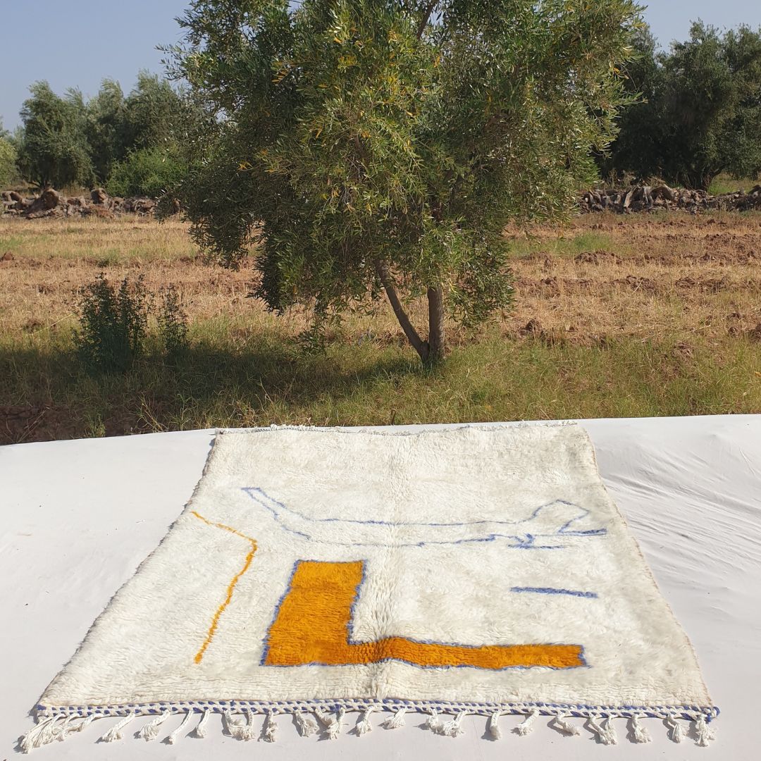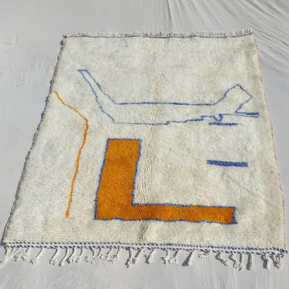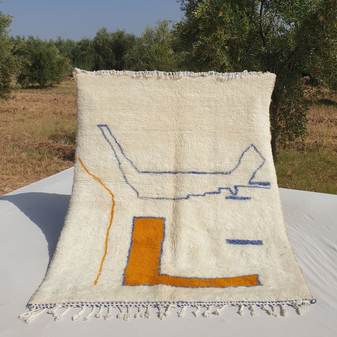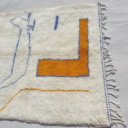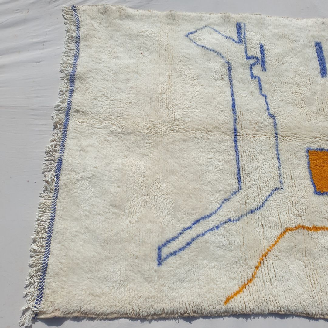Bring a touch of elegance to your space with this beautiful cream Moroccan rug, a 6x7 ft handwoven treasure from the Middle Atlas Mountains of Morocco. This 6x7 rug features a creamy base accented with vibrant orange and blue abstract patterns, embodying the charm of a moroccan shag rug. Crafted from 100% natural dyed wool, it’s a perfect 6x7 bedroom rug or rug living room highlight, offering both durability and plush comfort. Shop more at our Moroccan rug collection!