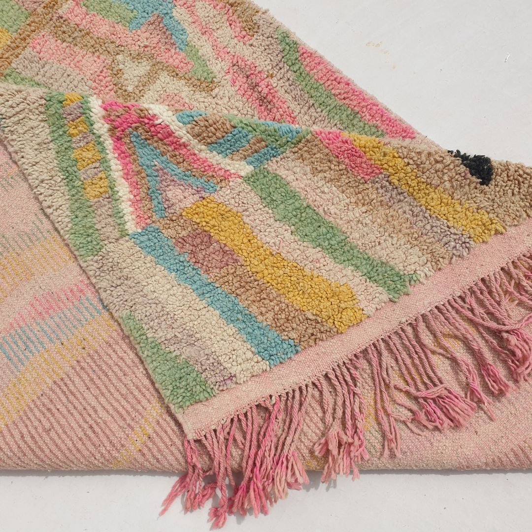 Boujad, l'Étonnant berbère poids léger tapisLe design s'inspire des tapis Kilim. Également appelé Hanbal, en raison de son côté bohème et moderne. scandinave, et berbère marocain traditionnel style, il n'a qu'un seul côté, il est généralement utilisé pour les sols ou pour décorer les murs des intérieurs.