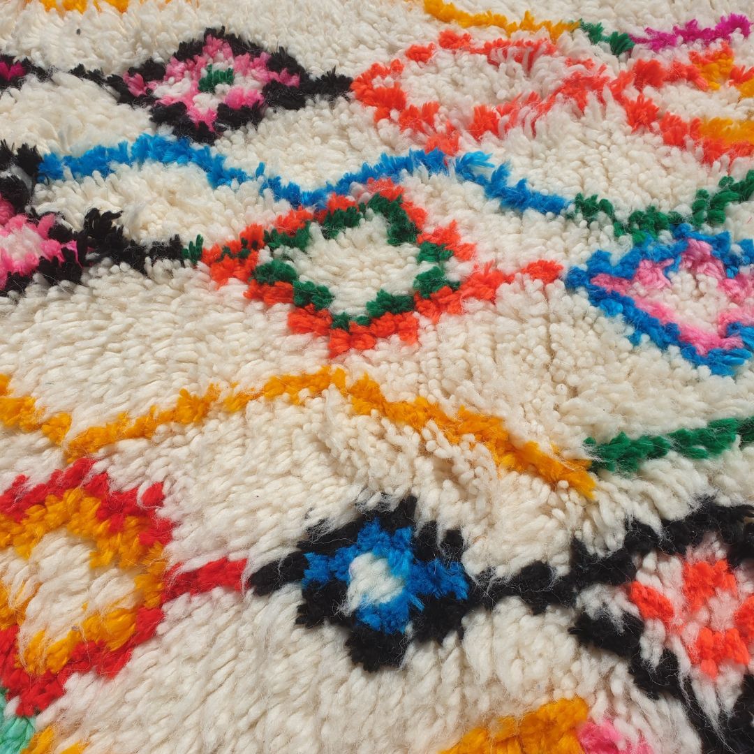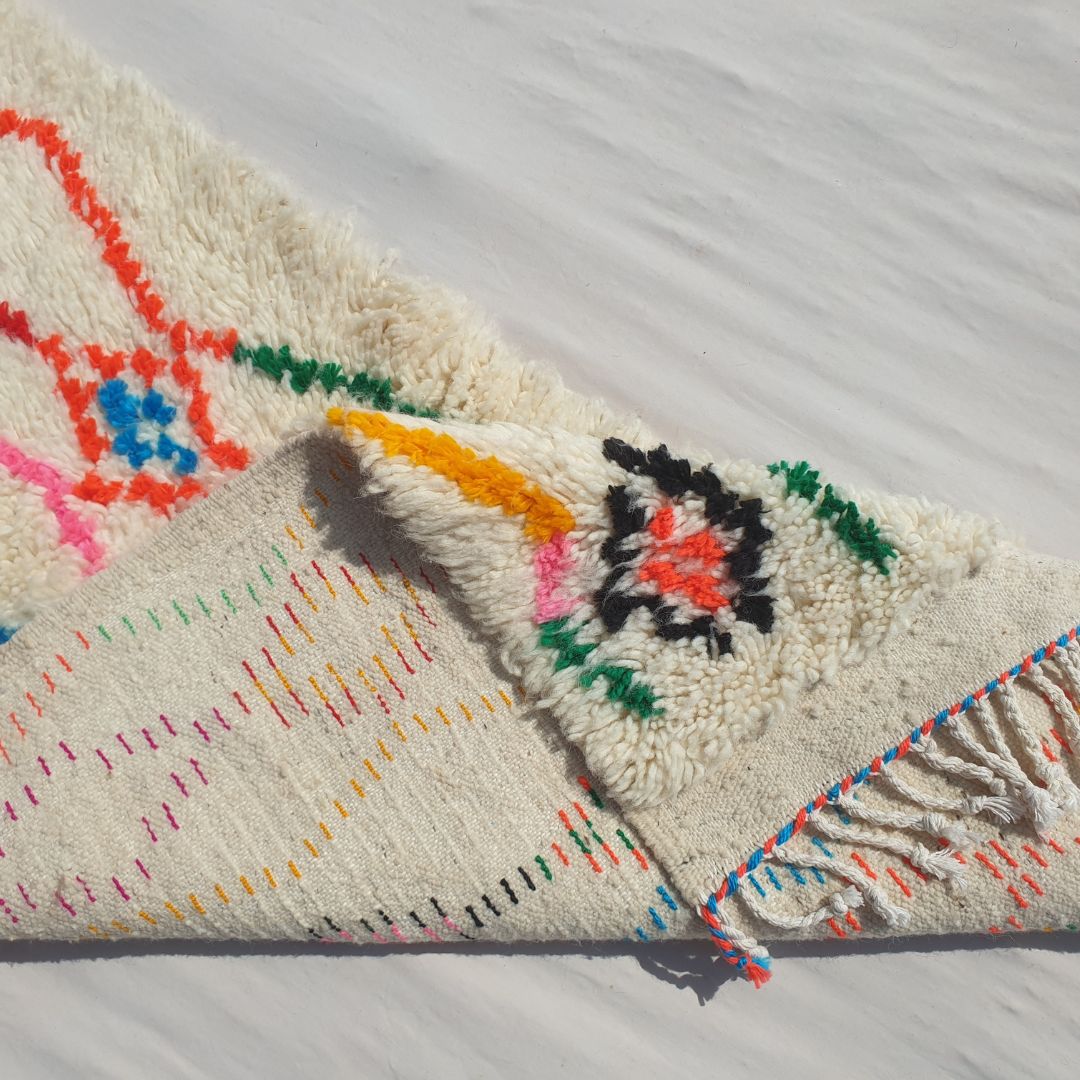 One rug takes lot of time and effort, but can tells a story of life, a story of a woman somewhere in the world trying to make her life and the one of her children better. In the heart of Azilal tribe, located in Demnat a Moroccan Berber region, one of richest parts of the Atlas Mountains, are made those pieces of arts, inspired from the beautiful flowered mountains and the flowing rivers. Azilal, the most beautiful and colorful rug. handmade for self-use or to be a gift during the winter’s long nights. The Azilal rugs reflects the richness of the region. This type of traditional carpets is usually double sided, the fluffy and warmest side for winter, the other side is for summer.