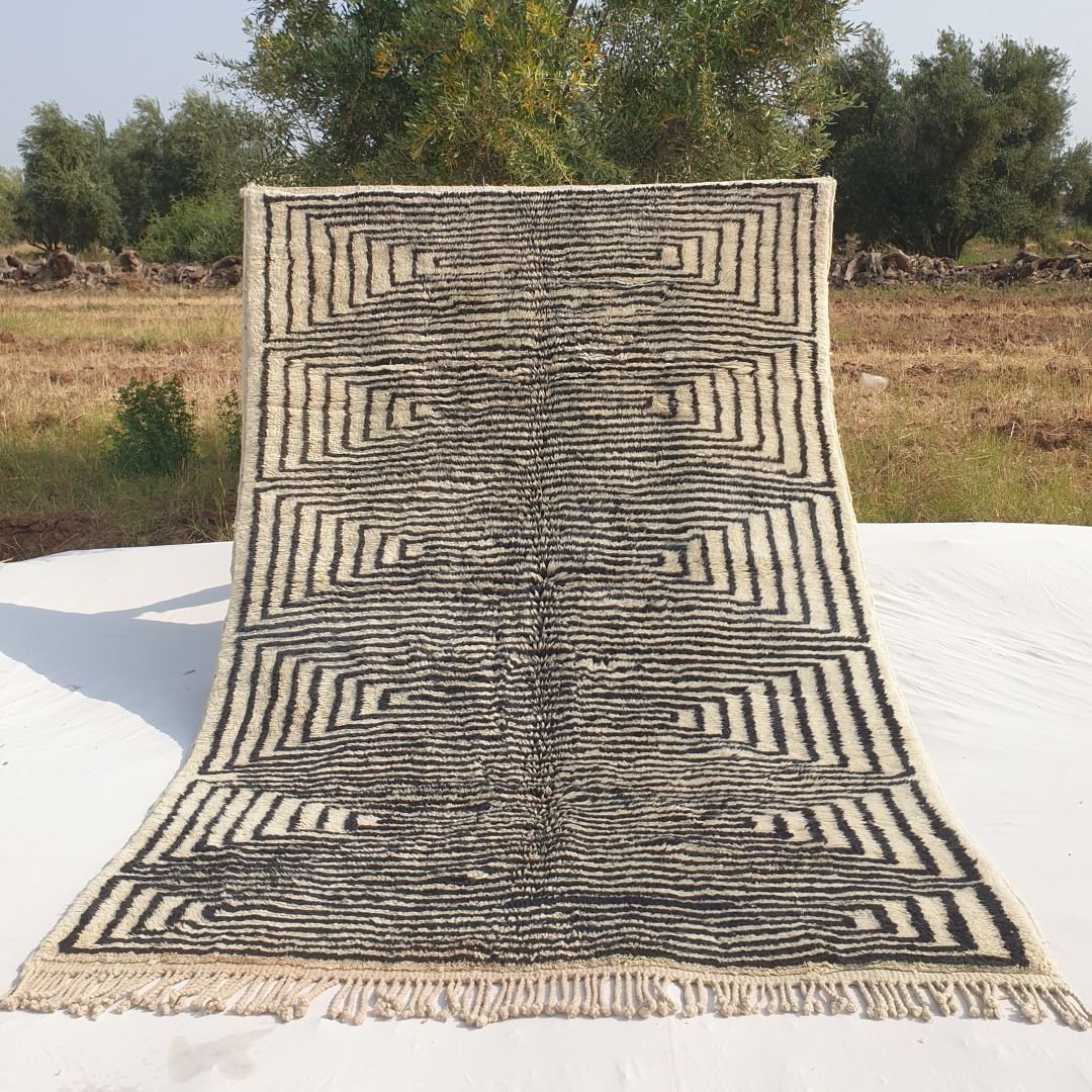 Modern Black and White Rug 6x9 for Living Room – Beni Mrirt Luxury