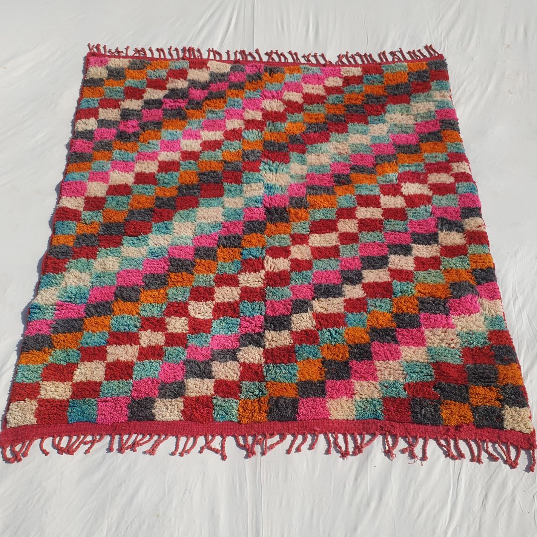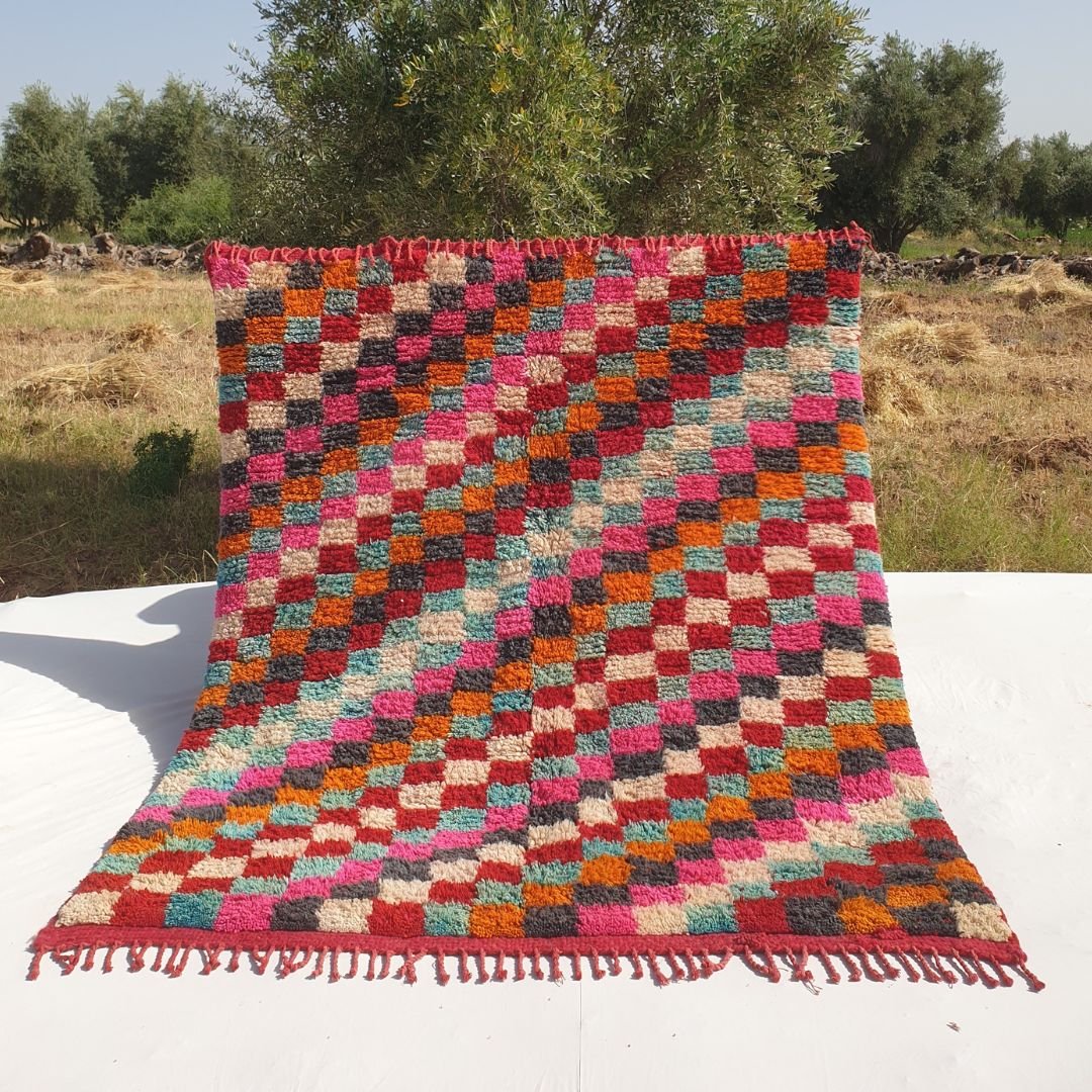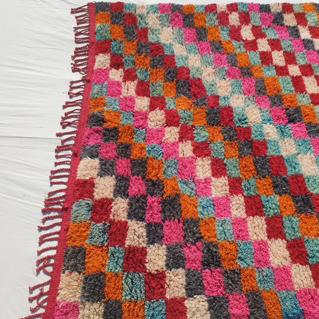 Colorful Checkered Moroccan Rug 7x8 for Living Room – Beni Mrirt Luxury