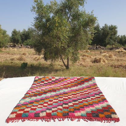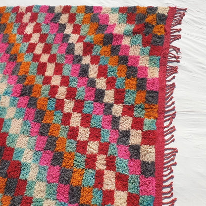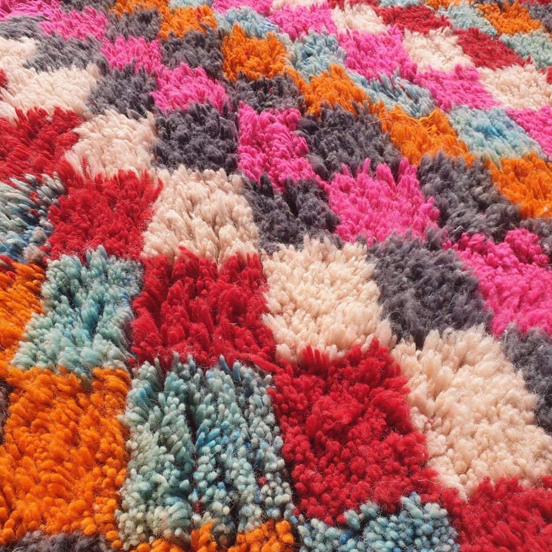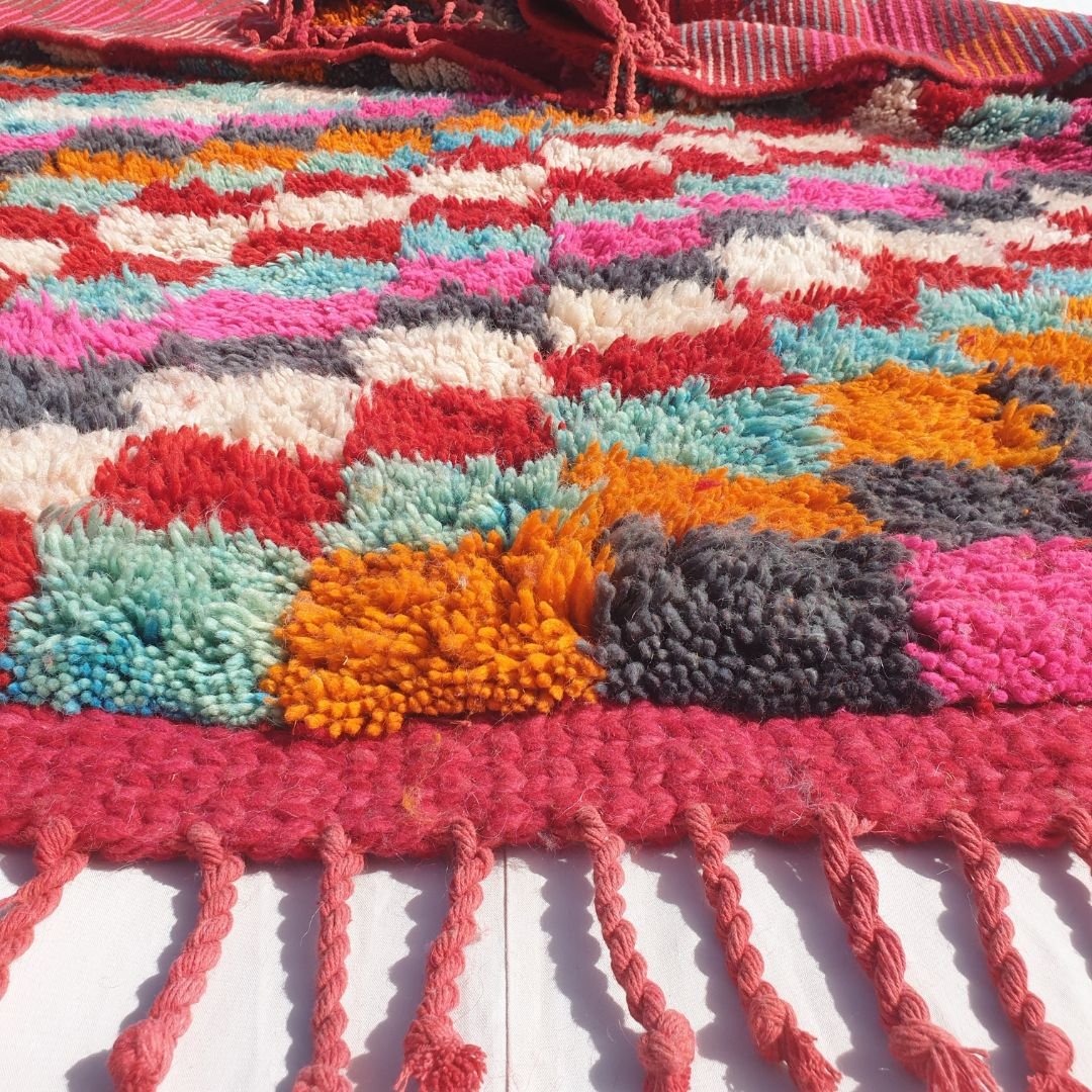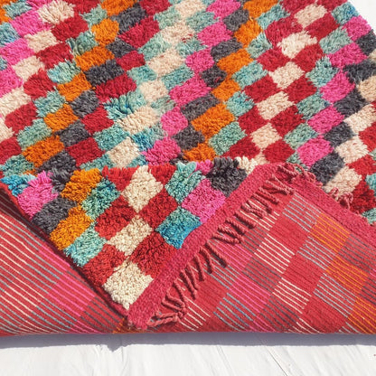 Colorful Checkered Moroccan Rug 7x8 for Living Room – Beni Mrirt Luxury