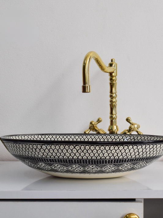 Brugge - Zwarte ovale keramische wastafel met de hand gemaakt - Artisan-Made Badkamerwastafel - 17"32 keer 13"78 inch - (ETAT)