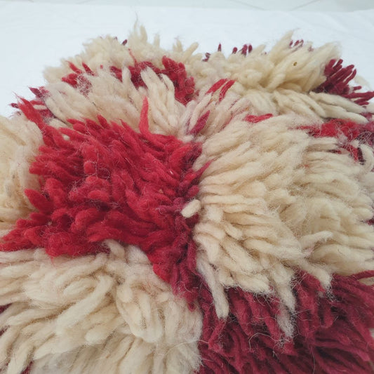 Cream Red Moroccan Cushion Cover – Cozy Beni Mrirt Craft 14x14 inches | 34x34 cm
