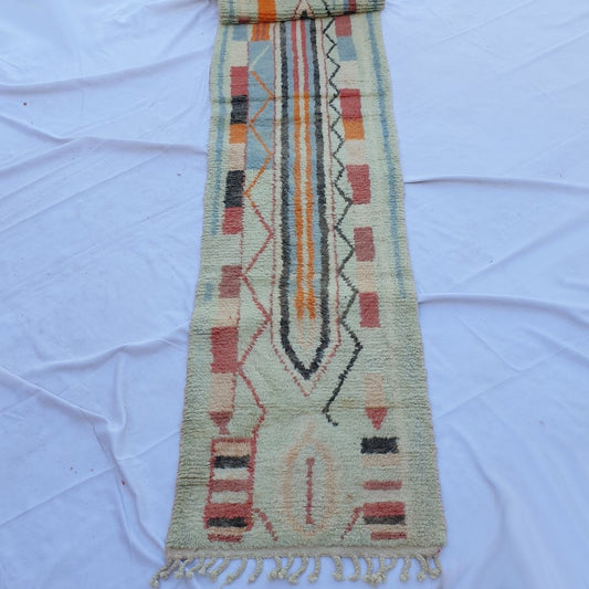 LARAK-loper | 11'2x2'4 voet | 3,41x0,72m | Marokkaans kleurrijk tapijt | 100% wol handgemaakt