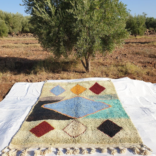 MAROKKANSK BOUJAAD-TEPP | Marokkansk berberteppe | Fargerikt teppe marokkansk teppe | Autentiske håndlagde berbertepper | 8x5 fot | 2,45x1,51 m
