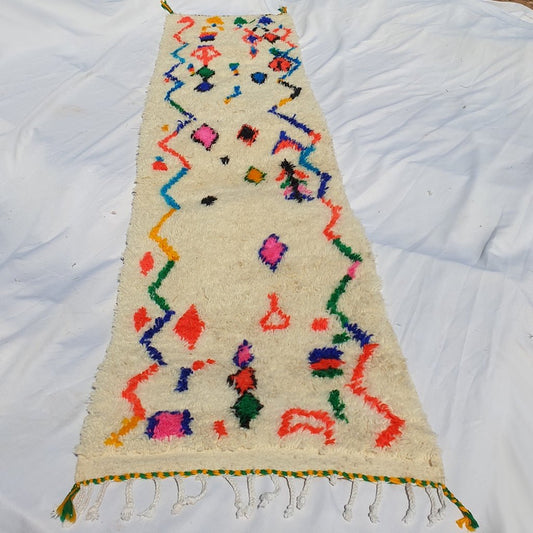 Marokkansk løpeteppe | Autentisk Boujaad Runner | Fargerikt ullteppe | Berberløper | Gangløper | 9'8 x 2' Ft | 3x0,59 m
