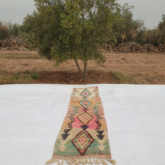 Marokkansk løpeteppe | Autentisk Boujaad Runner | Fargerikt ullteppe | Berberløper | Gangløper | 10'6 x 2'2 Ft | 322x67 cm
