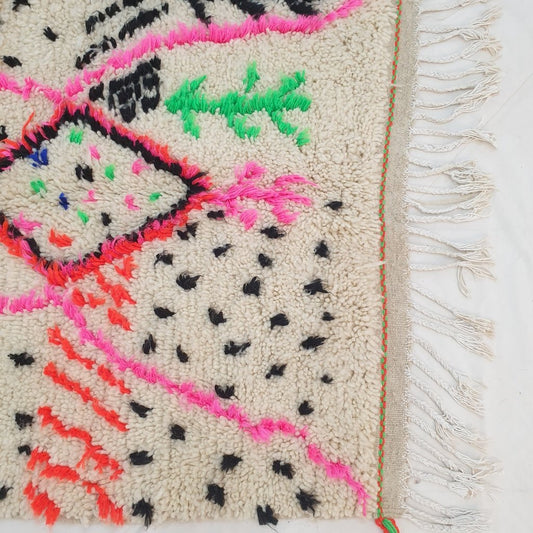 Marokkansk hvitt teppe Azilal | MICHALHA | 4'6x2'9 fot | 1,40x0,88 m | 100% ull håndlaget