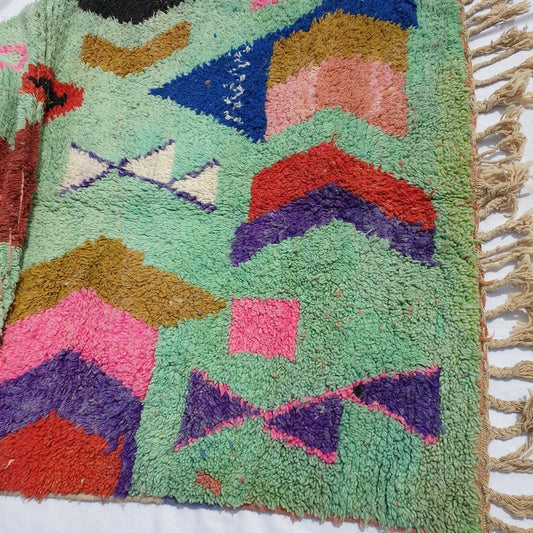 ACHERCHUR | 8x5 fot | 2,5x1,5 m | Marokkansk fargerikt teppe | 100% ull håndlaget