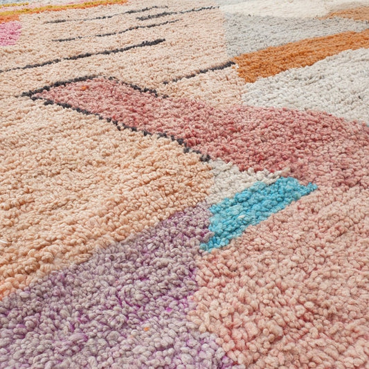 Ormia | Overdimensjonert rosa marokkansk teppe 9x13 Berber Boujad | Autentisk håndlaget stue teppe | 9'42x13'29 ft | 287x405 cm