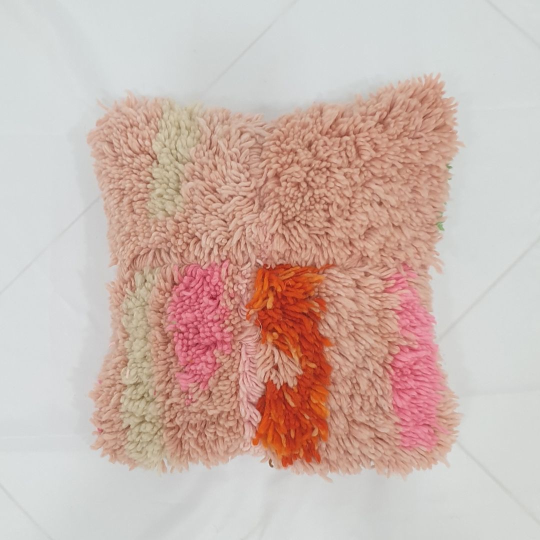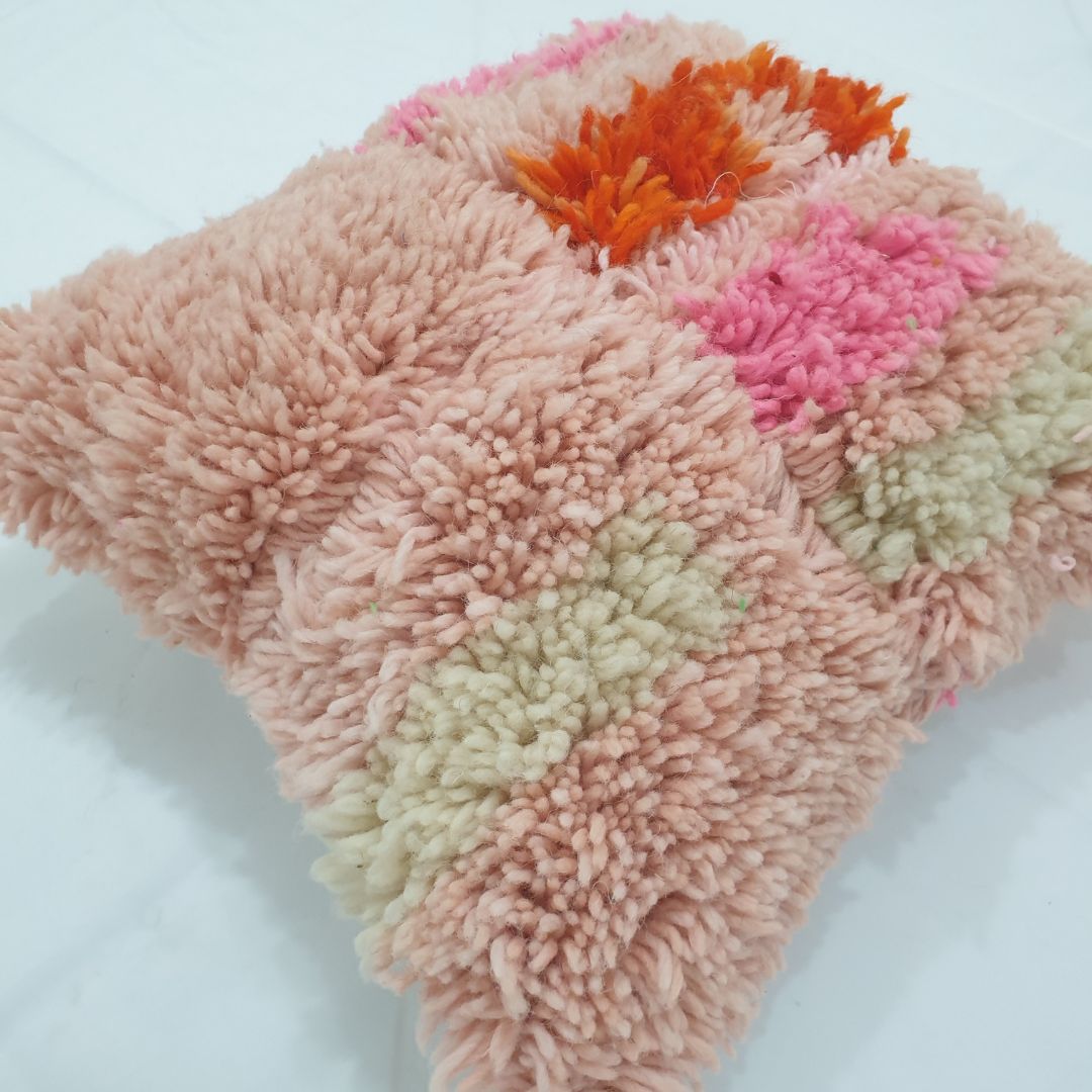 12x16 Shaggy Wool Cushion Cover - Beni Mrirt Peach Fiesta Glow | 40x30 cm
