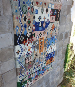 Boujaad, the Amazing Berber lightweight’s rug. The design is Inspired from the Kilim rugs. Named also Hanbal, because of its Boho, Modern, Scandinavian, and traditional Berber Moroccan style, it has only one side, it is usually used for floors or to decorate the walls of the interiors.