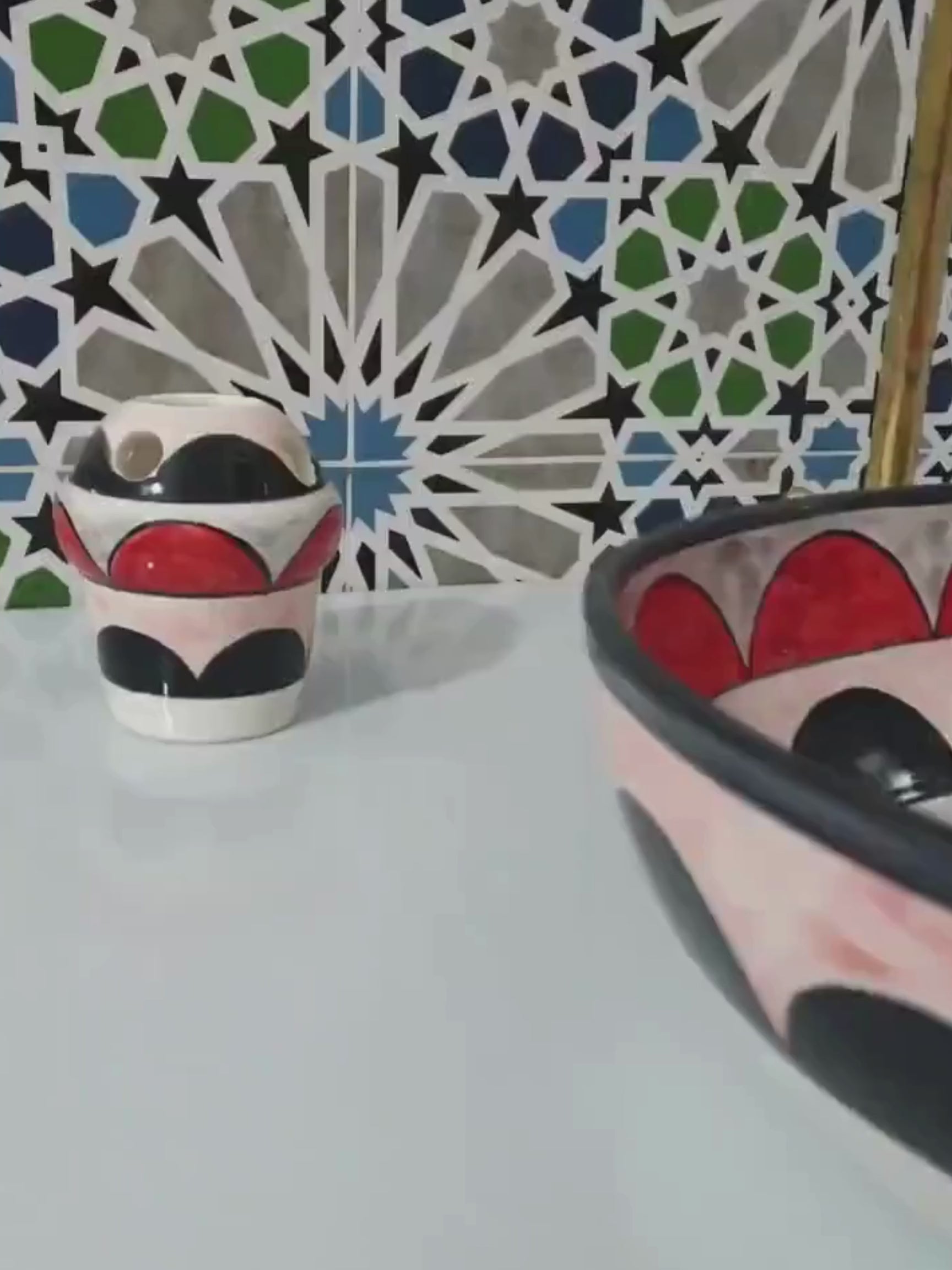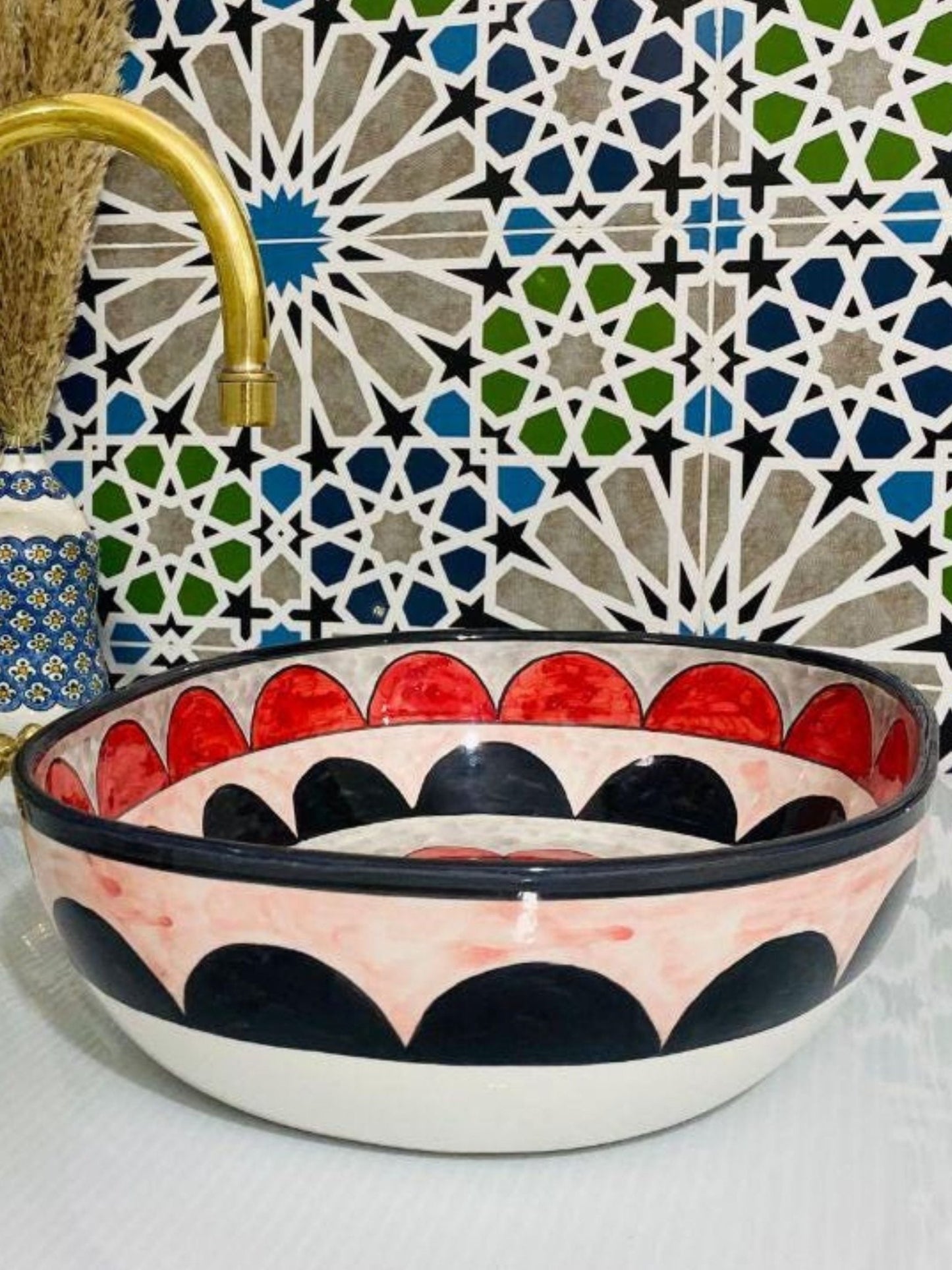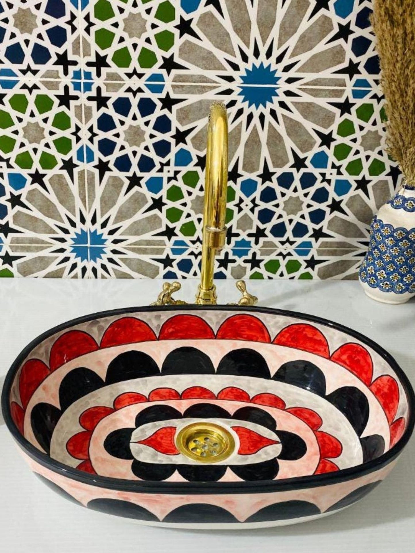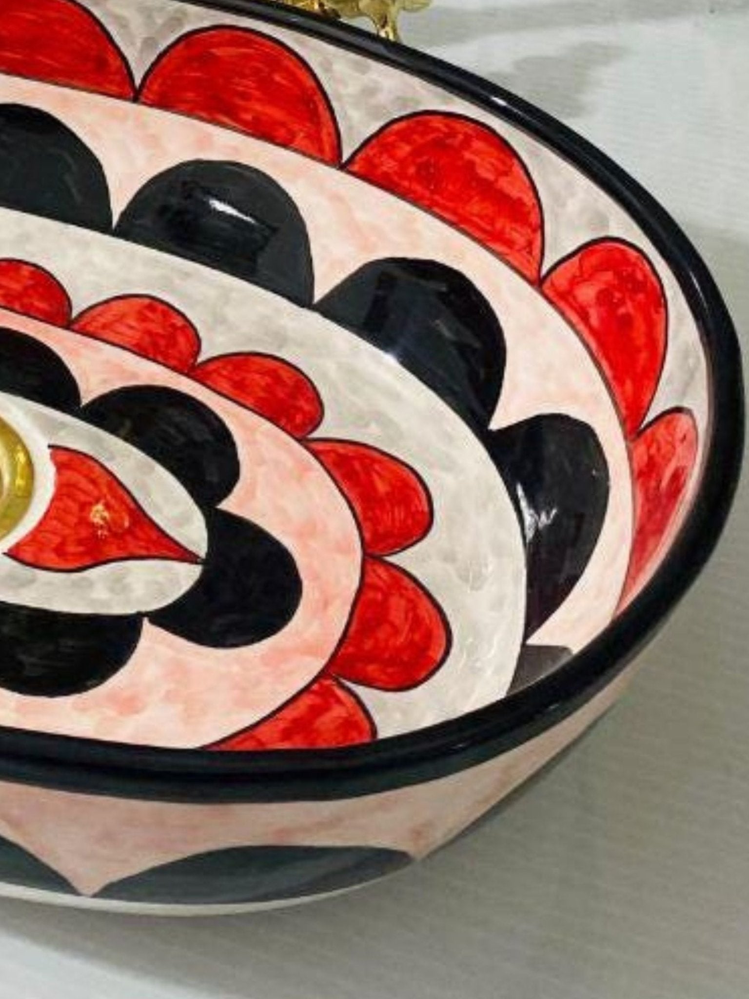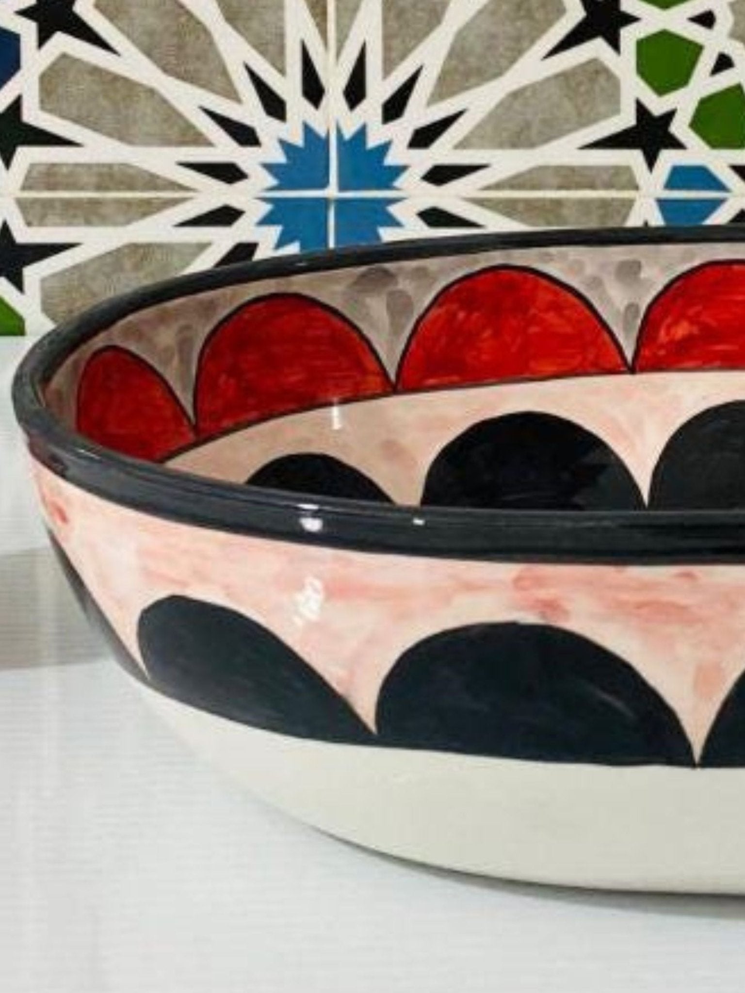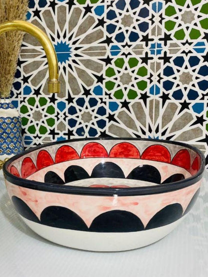 Amsterdam - Handmade Moroccan Oval Ceramic Sink – Red, Black, and White Top Counter Vessel Sink - (ETFS)