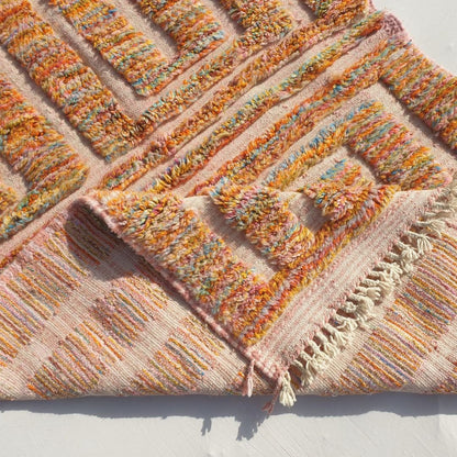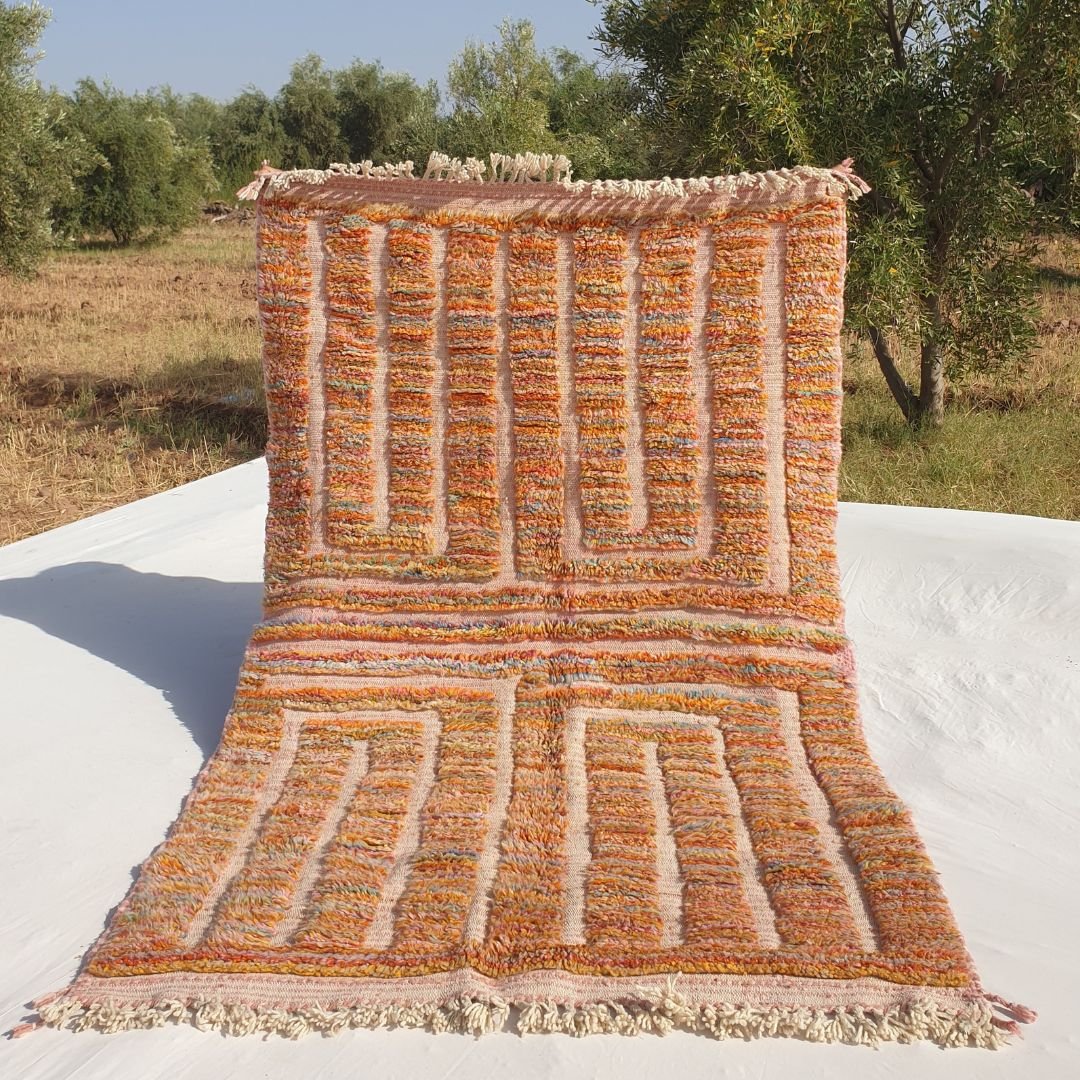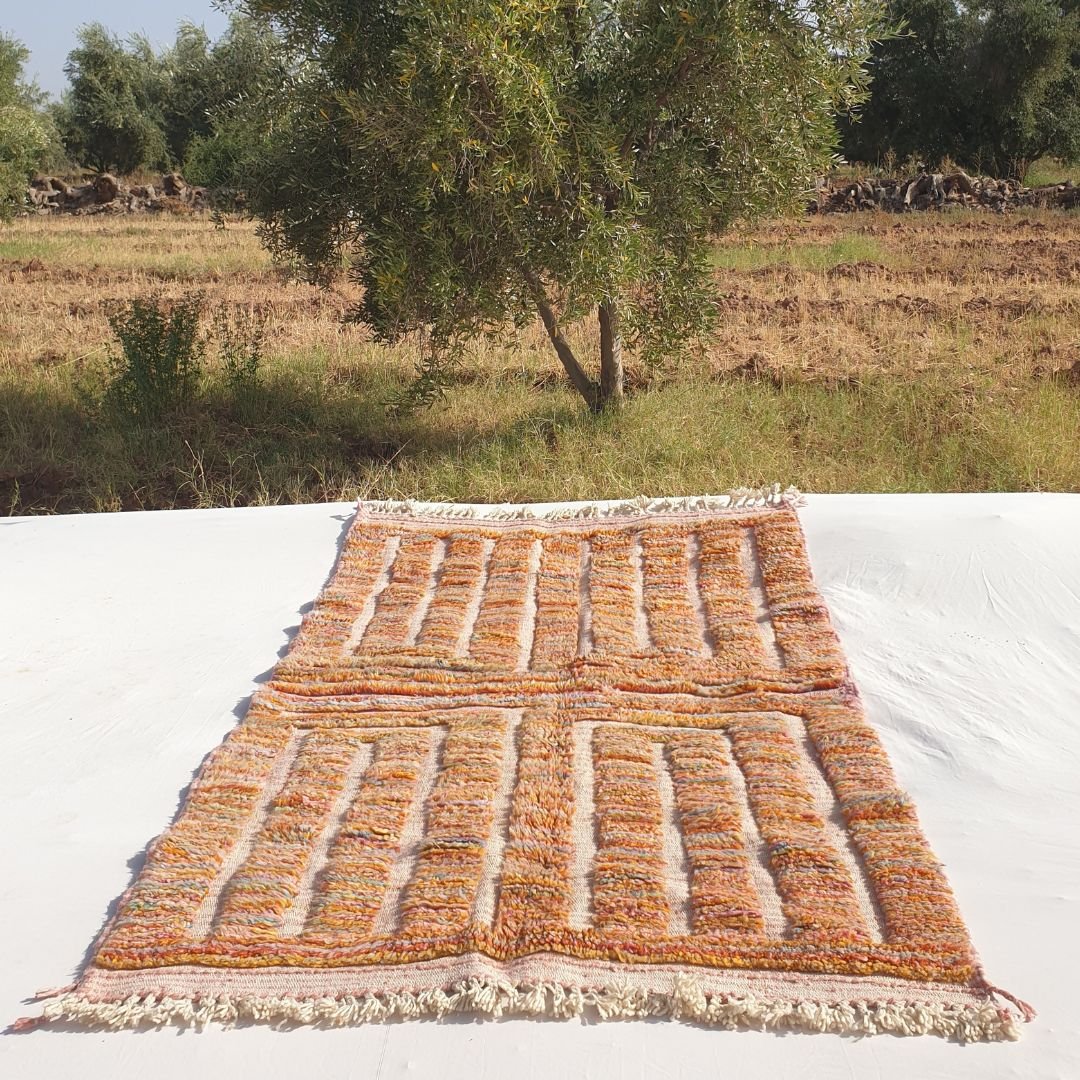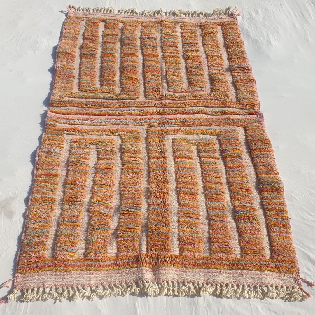 Anabna | Pink Orange Moroccan Rug 5x7 - Handmade Beni Ourain Wool Rug | 5'02x7'81 ft - 153x238 cm