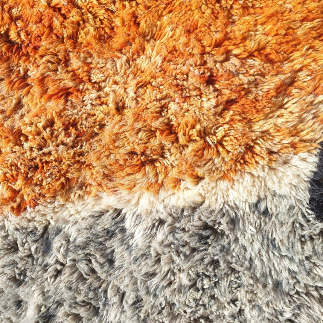 The Berber women pack the wool on the vertical loom using a metal comb, which results in a fine and silky texture of the wool that just feels heavenly on the foot, the Mrirt rugs are the most expensive due to the high quality and the quantity of the wool we use.