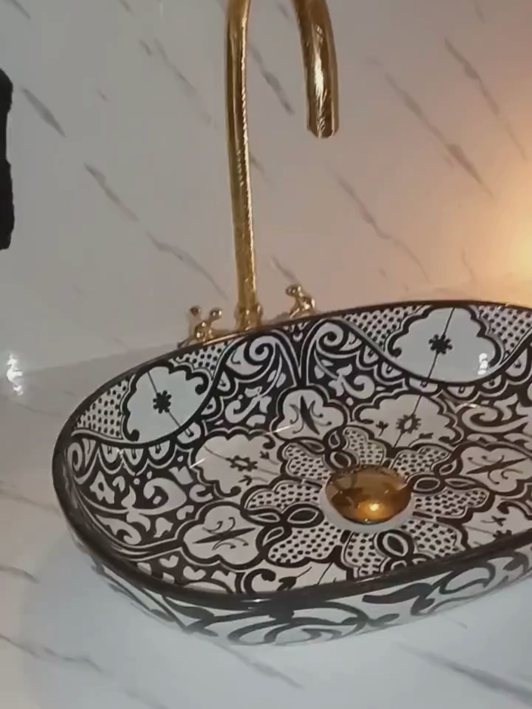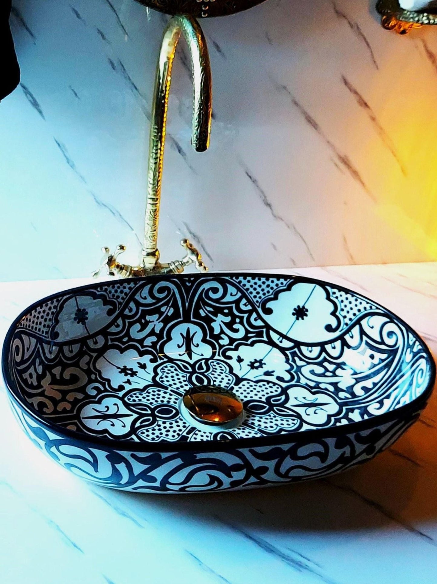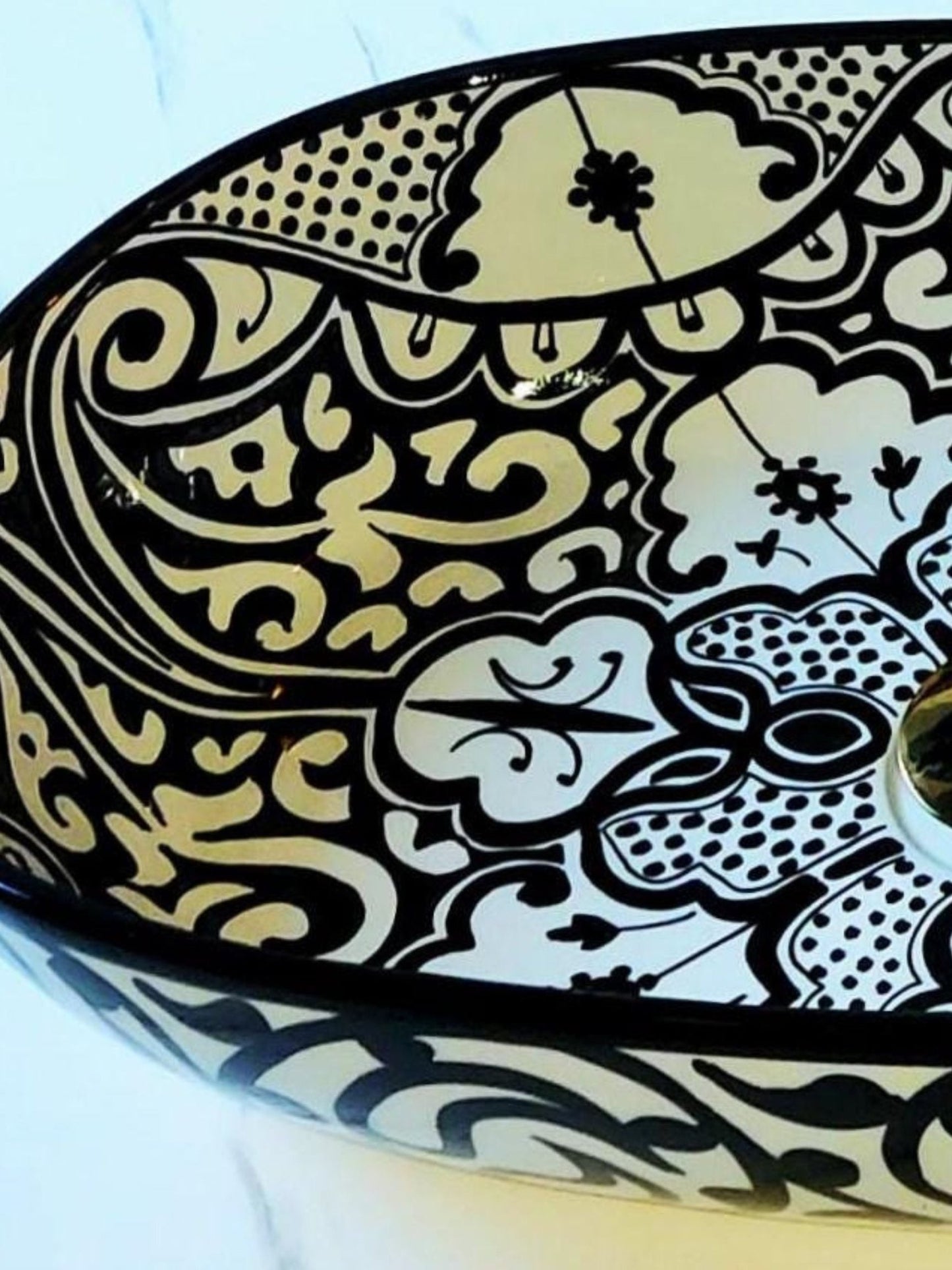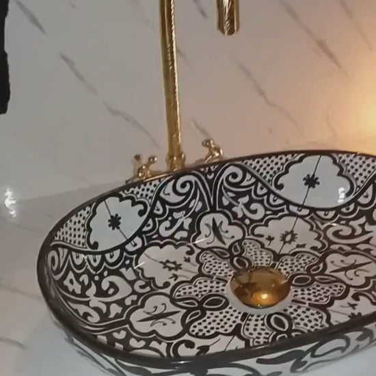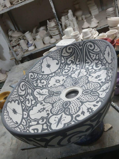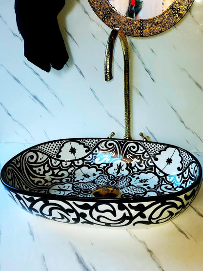 Athens - Handmade Moroccan Oval Ceramic Sink – Black Paisley Top Counter Vessel Sink - (ETAFS)