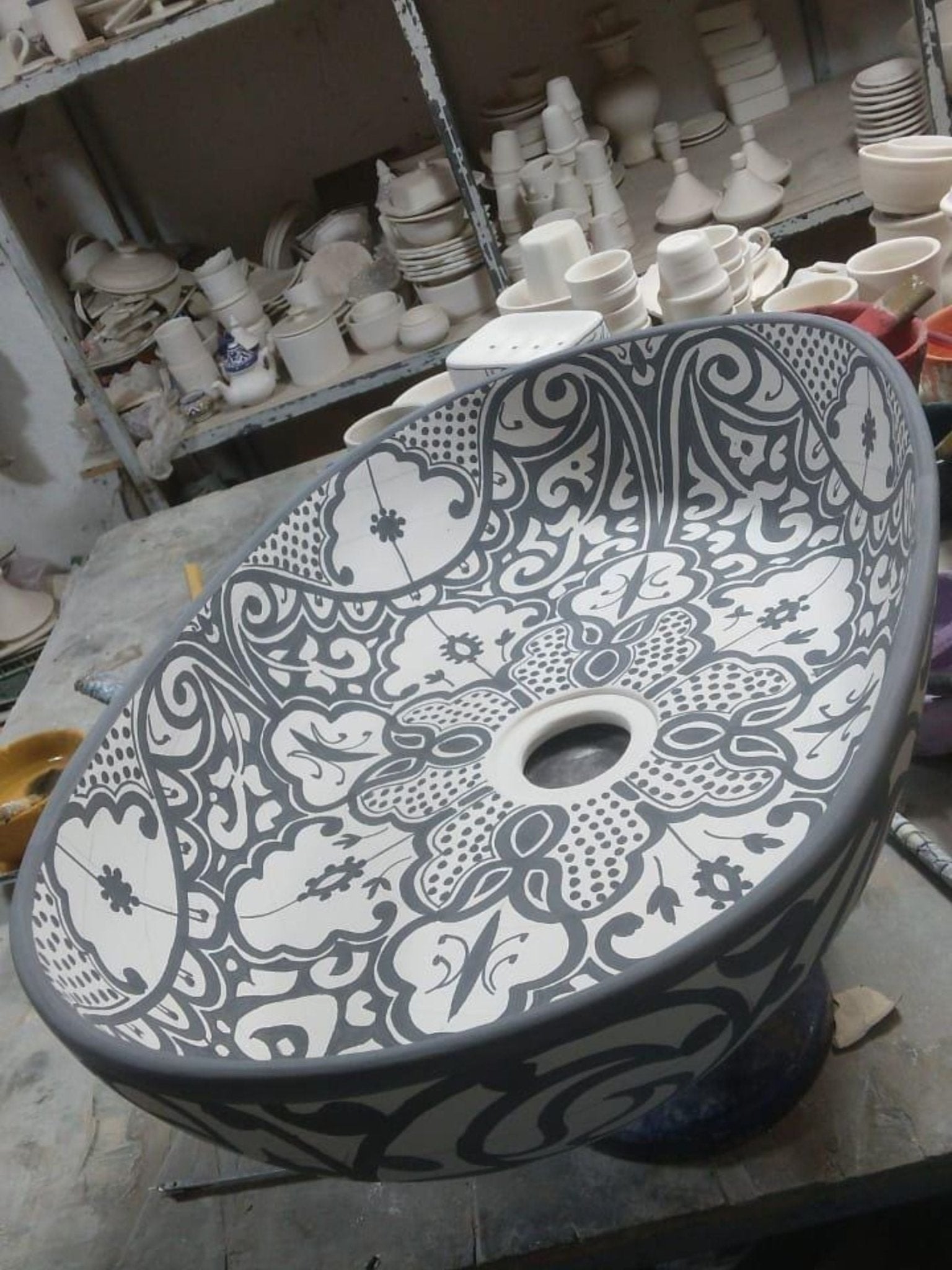 Marrakech - Handcrafted Oval Ceramic Vanity Sink – Artisan-Made Bathroom Basin - (ETAT)